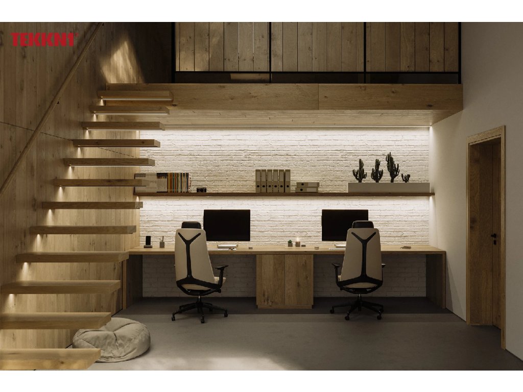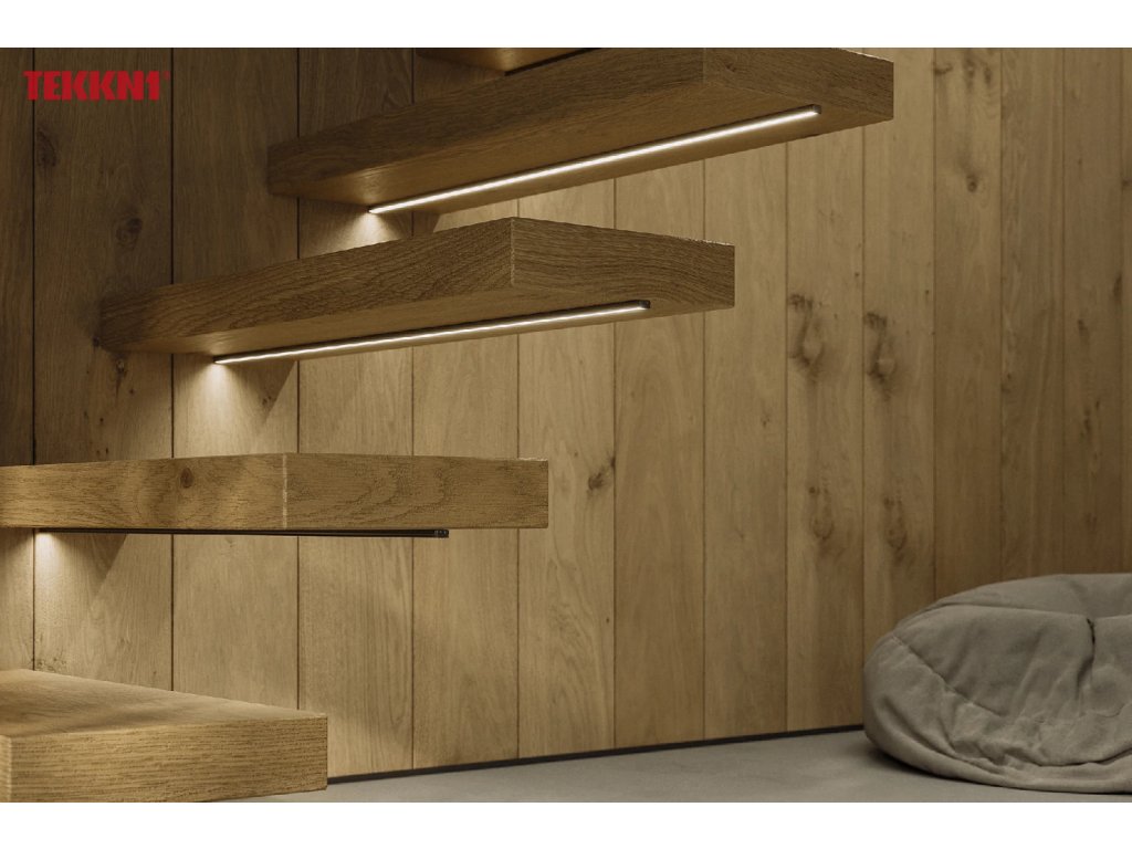 LED profil TEKKNI IKKE je elegantný povrchový hliníkový profil určený na moderné osvetlenie nábytku, stien aj dekoratívnych líšt. Výborne sa hodí aj na vloženie do okrasných líšt, kde slúži na osadenie LED pásikov a vytvára čistý, estetický svetelný efekt.