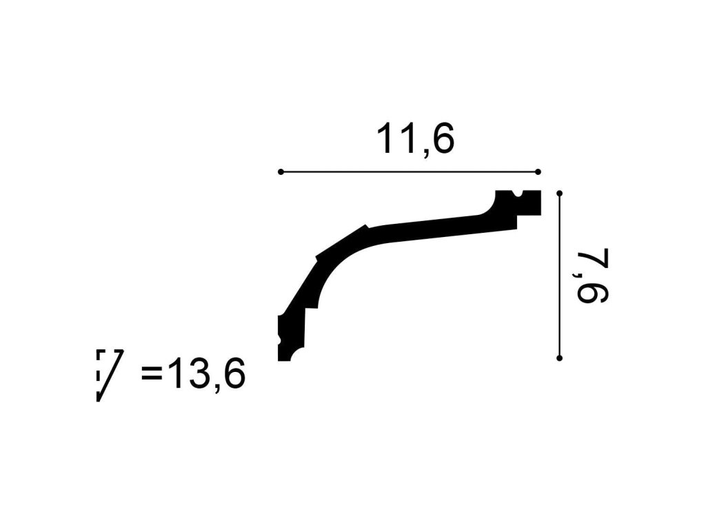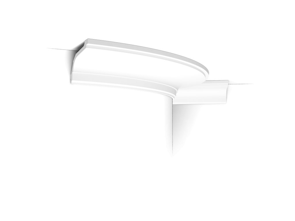 Klasická rovná rímsová lišta, ktorá sa tiahne pozdĺž stropu. Vďaka technológii flex nie sú zakrivené steny a povrchy žiadny problém.