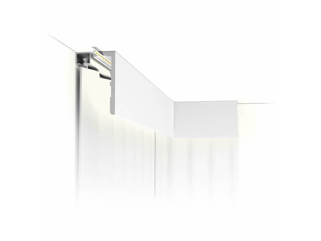 Profil sa ľahko prispôsobí každému interiéru a dokonale zakrýva technické prvky, ako sú koľajnice na závesy. Môže sa tiež kombinovať s nepriamym osvetlením pre vytvorenie sofistikovanej atmosféry.