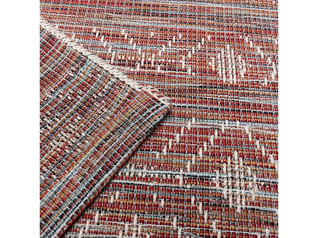 Tento originálny koberec sa vyznačuje teplými farbami a jedinečným vzorom, ktorý púta pozornosť.