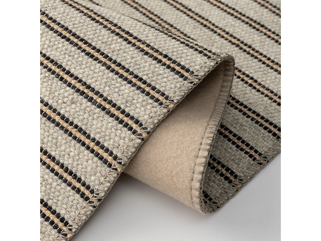 Tento prírodný koberec s výrazným lineárnym pruhovaným vzorom je štýlovým a nadčasovým doplnkom, ktorý dokonale dopĺňa svetlé a harmonické interiérové dizajny.