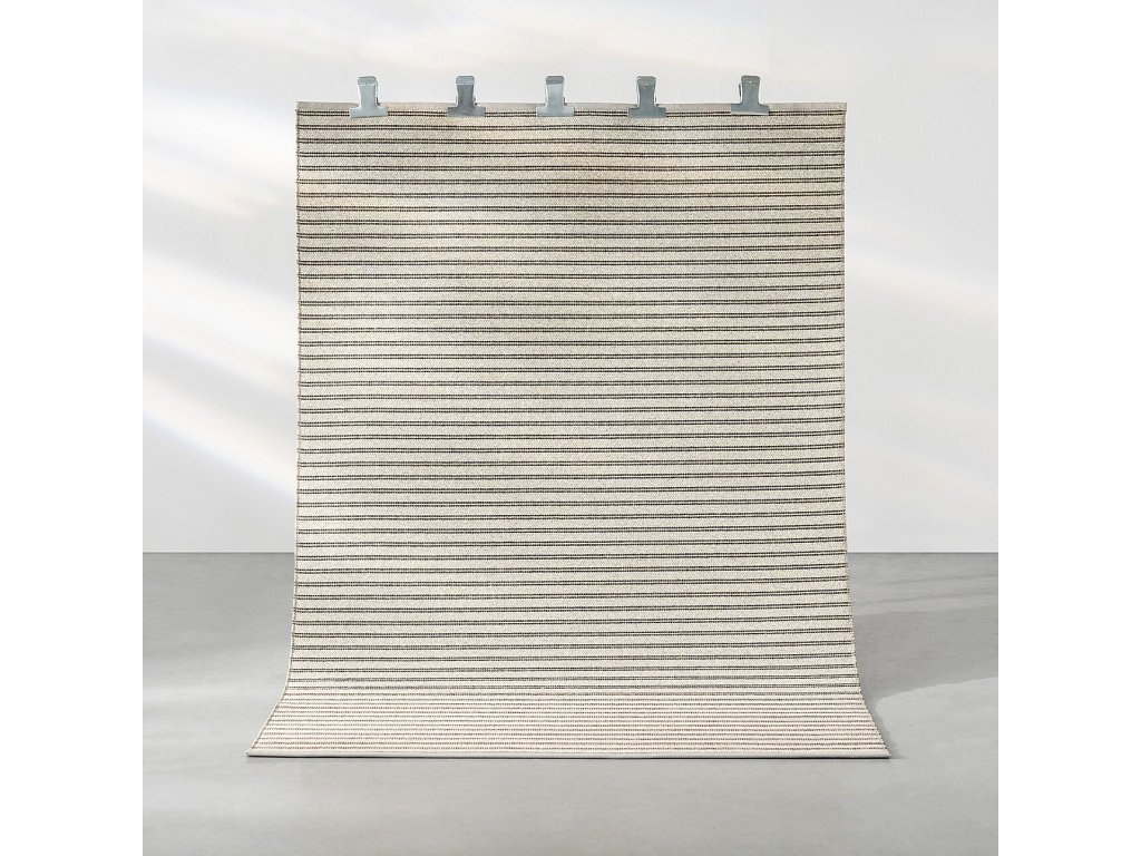 Prírodný koberec vo svetlých farbách s jemným pruhovaným vzorom.