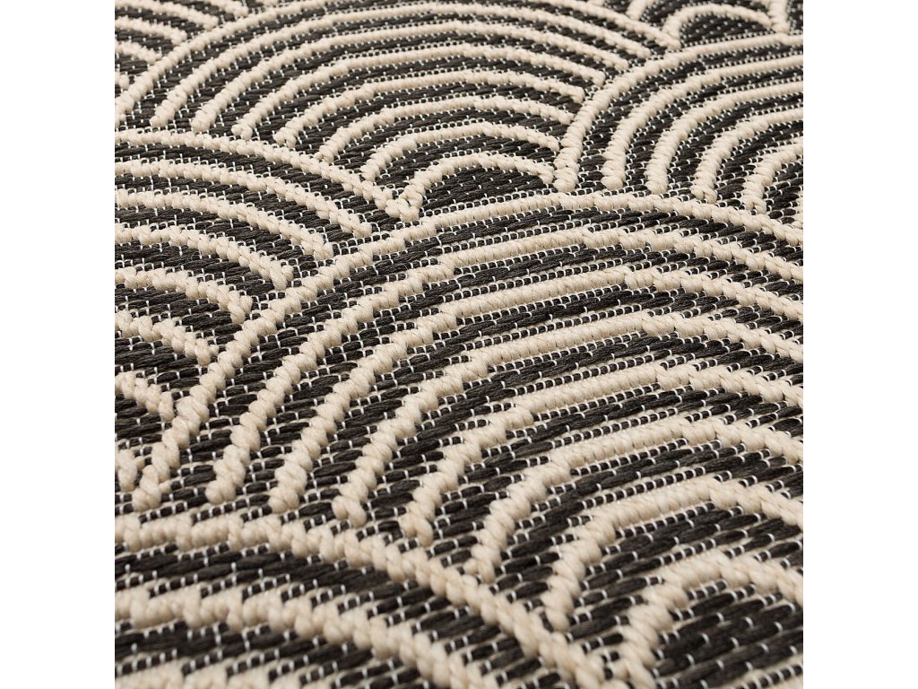 Koberec v tmavo čiernej a béžovej farbe s geometrickým vzorom. Perfektne sa hodí do moderného a minimalistického štýlu.