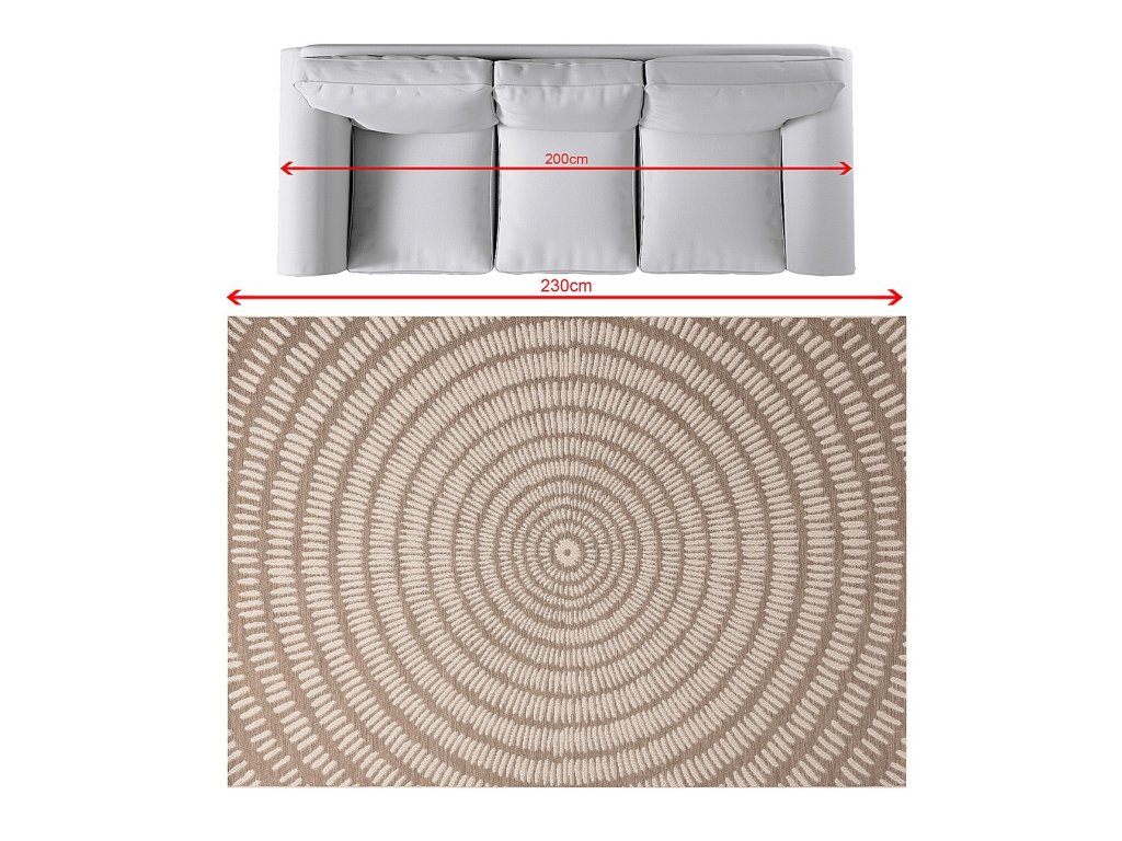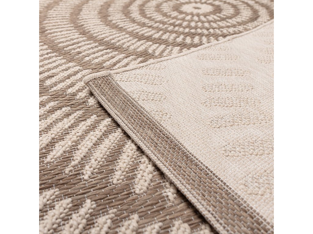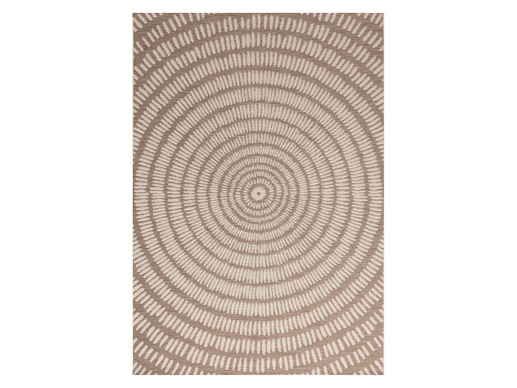 Tento koberec sa vyznačuje teplou, prírodnou hnedou farebnou schémou s geometrickým kruhovým vzorom.