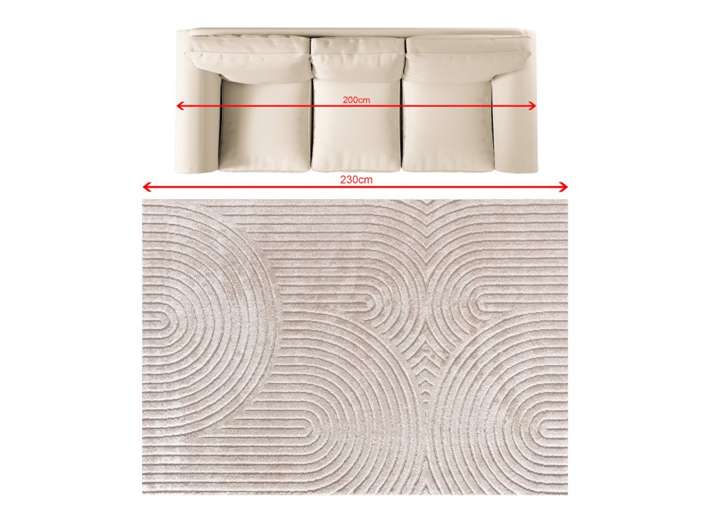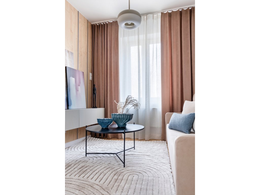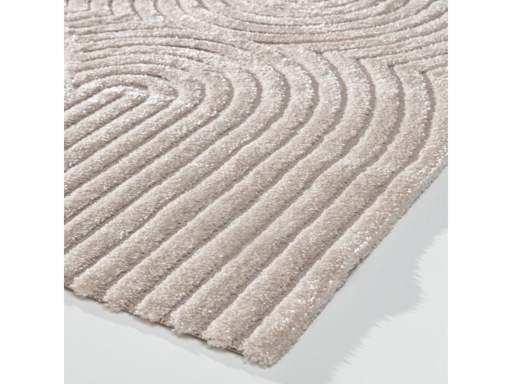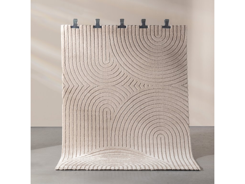 Koberec Lavia je perfektnou voľbou pre tých, ktorí hľadajú štýlové a praktické riešenia pre svoj interiér. Vďaka svojmu jemnému béžovému odtieňu a výraznému geometrickému oblúkovému vzoru sa perfektne hodí do moderných interiérov a dodáva im harmóniu a eleganciu. Vyrobený z vysoko kvalitných materiálov, je mimoriadne mäkký, vďaka čomu je každý krok čistým potešením.