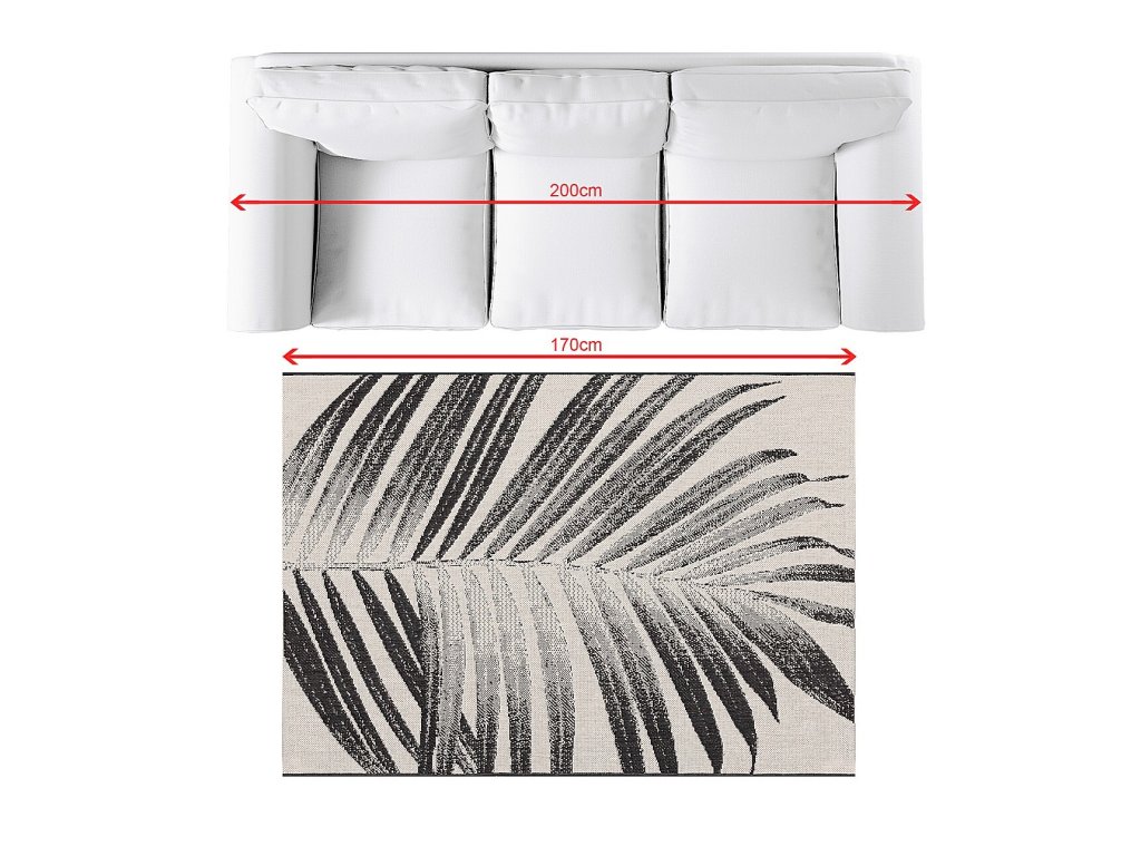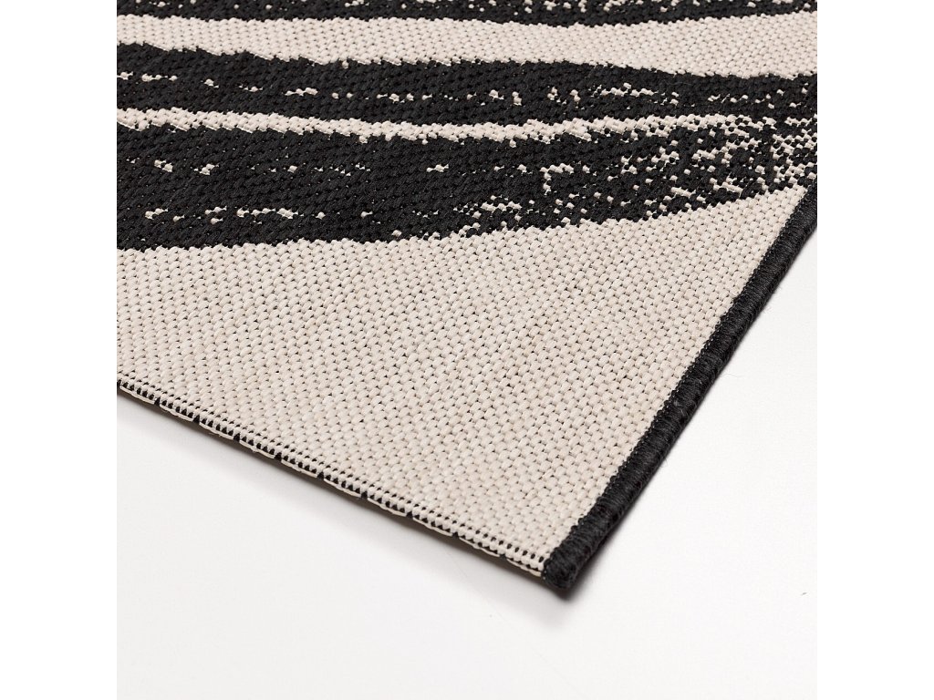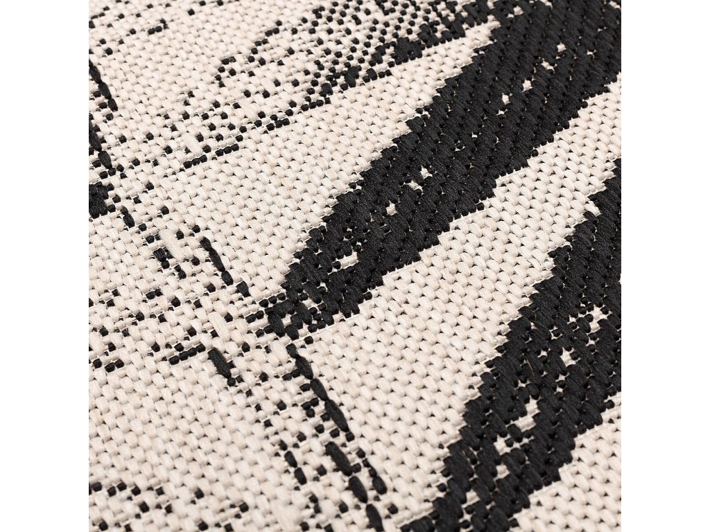 Koberec s módnym kvetinovým vzorom v čiernej a krémovej farbe. Je určený na vnútorné aj vonkajšie použitie a je ideálny do obývacích izieb, spální, chodieb a dokonca aj terás.