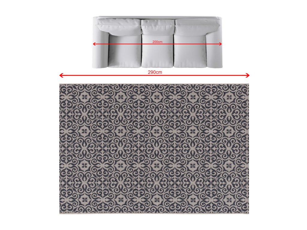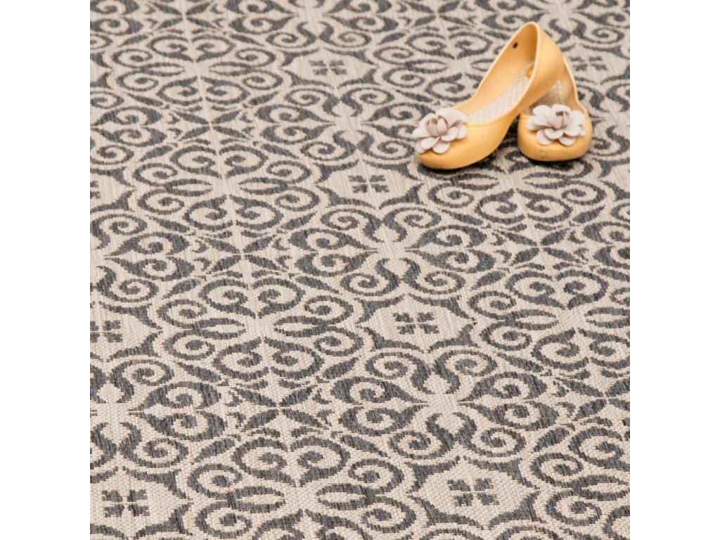 Moderný etno koberec v béžovej a antracitovej farbe. Je určený na vnútorné aj vonkajšie použitie a je ideálny do obývacích izieb, spální, chodieb a dokonca aj na terasy. Vďaka svojmu neutrálnemu dizajnu a jemnému vzoru sa hodí do širokej škály interiérov. Moderné koberce sú výraznou a dizajnovo orientovanou sériou, ktorá dodá každej miestnosti jedinečný nádych.