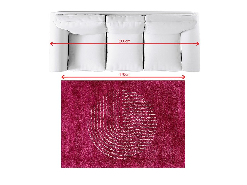Moderný fuchsiový koberec s kruhovým vzorom.