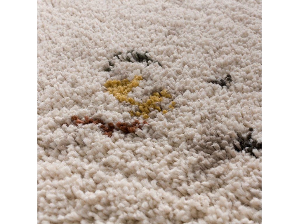 Koberec s mäkkým vlasom s moderným dizajnom v béžovej farbe.