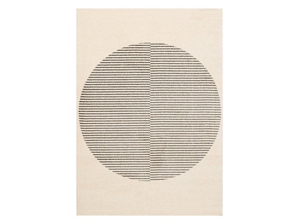 Moderný koberec s kruhovým vzorom v odtieňoch sivej.