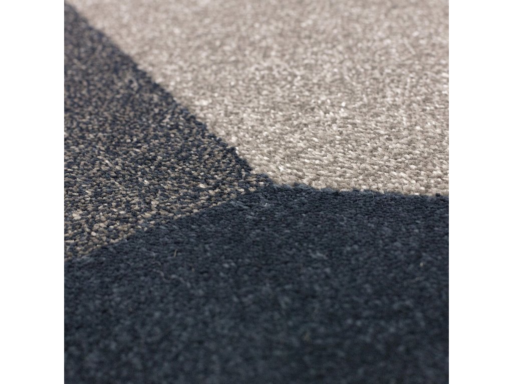 Moderný koberec s geometrickým vzorom v odtieňoch tmavomodrej a sivej. Jeho vlas je mäkký a príjemný na dotyk. Zahreje a vnesie do vášho interiéru farbu, čím mu dodá mimoriadny charakter a štýl. Tento koberec sa môže pochváliť jedinečným a nadčasovým dizajnom.