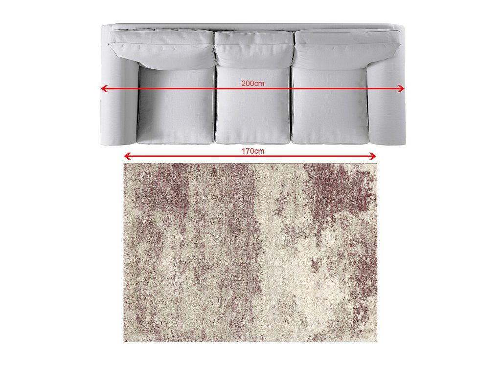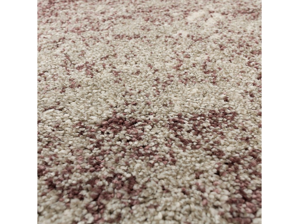 Koberec Softness má univerzálny dizajn v sivej a striebornej farbe s bordovým akcentom.