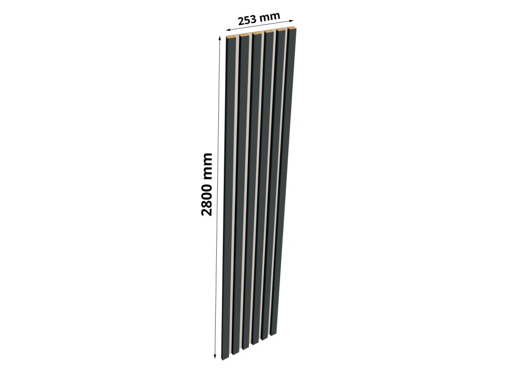 Rozmery lamely: Dĺžka: 275 + 5 cm extra*, Šírka: 2,8 cm, Hĺbka: 1,2 cm, Rozstup lamiel: 1,7 cm