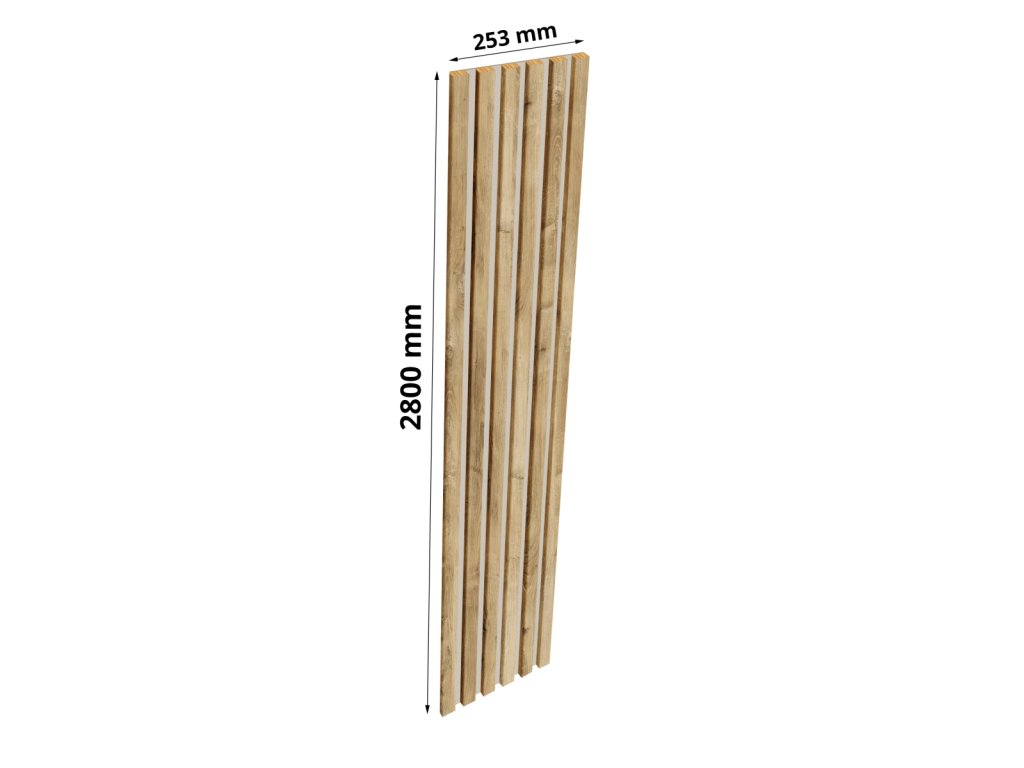 Rozmery lamely: D: 275 + 5 cm extra*, Š: 2,8 cm, H: 1,2 cm, Rozstup lamiel: 1,7 cm