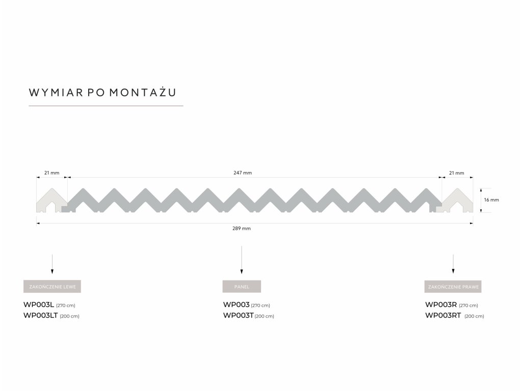 Ľavé zakončenie WP003L v podobe trojuholníkovej lišty je pôsobivým a moderným dekoratívnym detailom, ktorý poteší každého nadšenca interiérového dizajnu. Určené na inštaláciu na ľavú stranu nástenného panelu z kolekcie Vivid. Zakončenie je vyrobené z odolného materiálu PolyForce, je vysoko odolné voči mechanickému poškodeniu a plne vodeodolné.