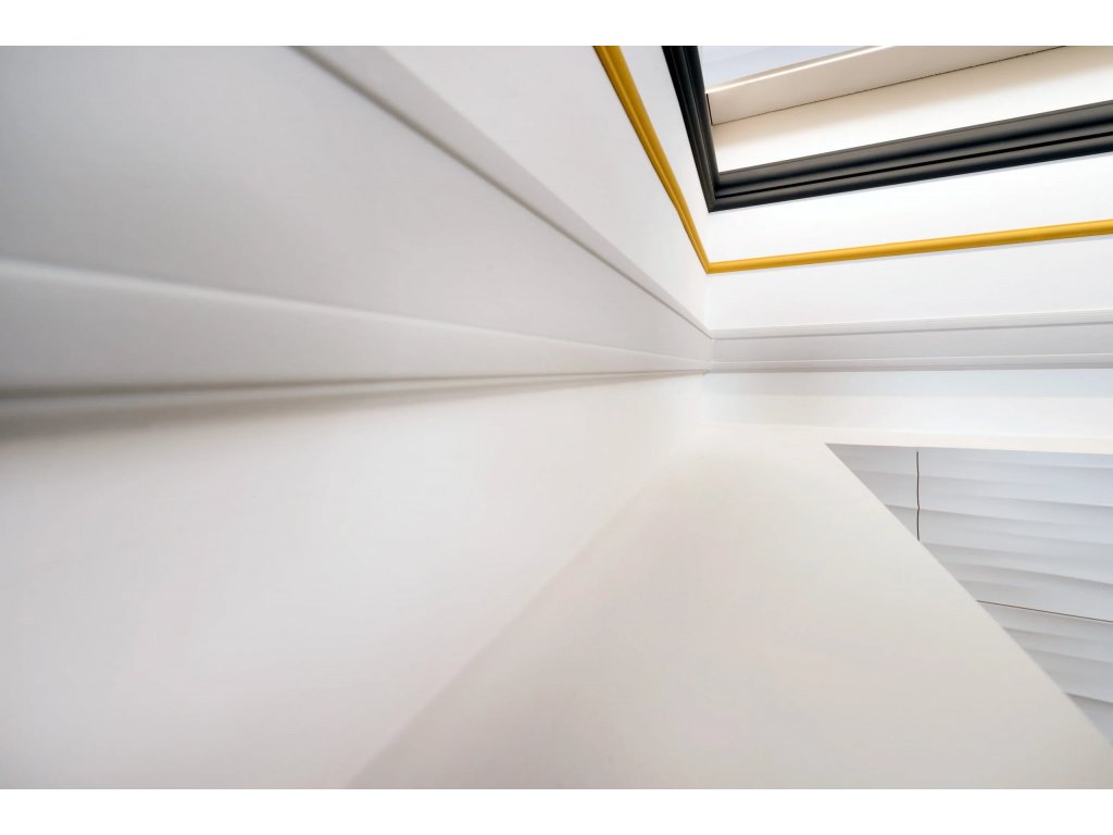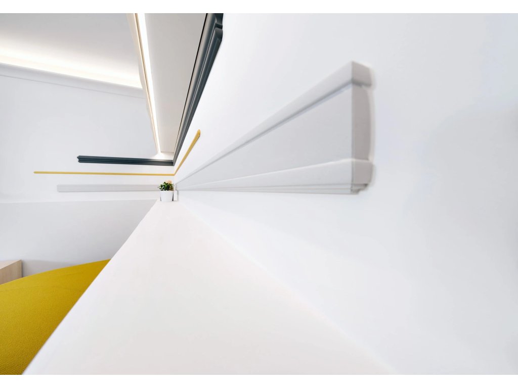 Nástenná lišta je vyrobená z husteného polystyrénu, vďaka čomu sa dá ľahko pripevniť. Produkt je dodávaný v bielej farbe, ale môže byť natretý v akejkoľvek farbe pomocou bežných farieb na steny. Produkt bol pripravený na prekrytie farbou, pretože bol natretý základným náterom, čo zvyšuje priľnavosť a zlepšuje kryciu schopnosť. Vďaka tomu bude efekt, ktorý dosiahnete, bezchybný.