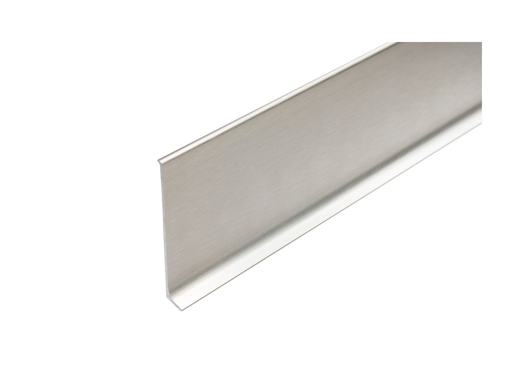 Hliníková soklová lišta s hladkým povrchom a jemným leskom určená do interiérov.