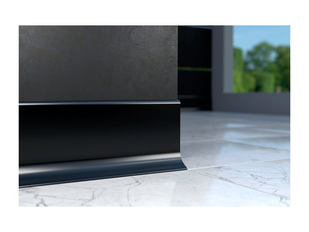 Hliníková soklová lišta s hladkým povrchom a jemným leskom určená do interiérov.