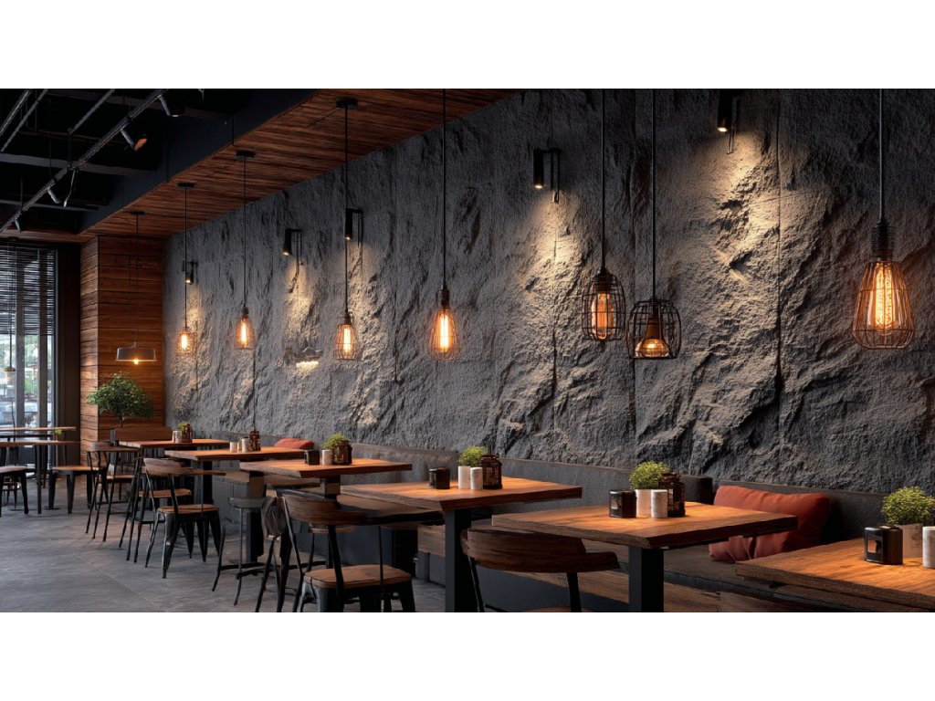 Moderný nástenný panel vyrobený z ľahkého a odolného polyuretánu (PU), verne reprodukujúci prírodný bridlicový kameň. Jeho jemná, nepravidelná textúra a sýta grafitová farba vytvárajú elegantný a minimalistický povrch s výrazným charakterom.