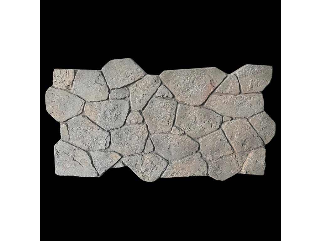 Dekoratívny nástenný panel vyrobený z ľahkého a odolného polyuretánu (PU), ktorý verne reprodukuje nepravidelnú štruktúru prírodného kameňa. Rôzne tvary a jemné odtiene sivej vytvárajú efekt autentického kamenného povrchu s prírodným charakterom.