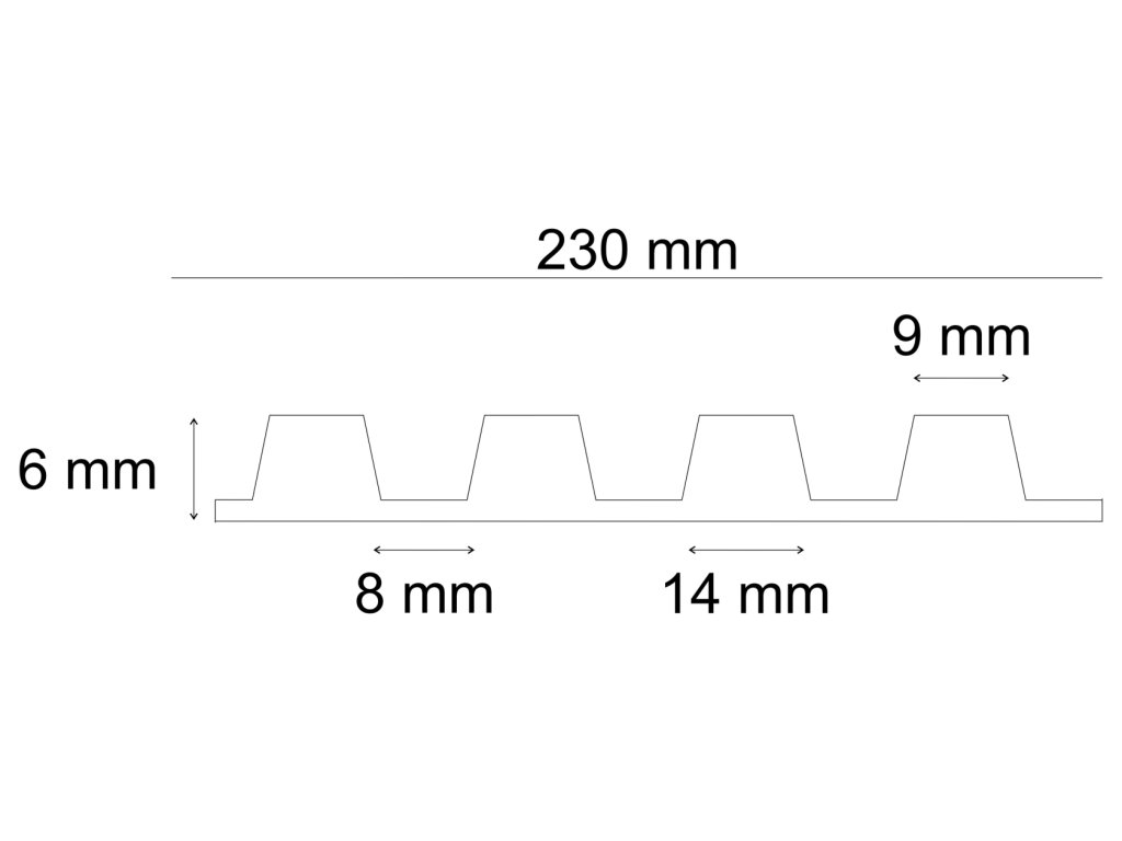 Jeho nízka hrúbka 6 mm a moderný vzhľad ho robia perfektným pre rôzne projekty, vrátane dekoratívnych stien a architektonických detailov.